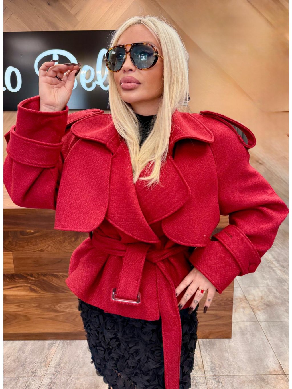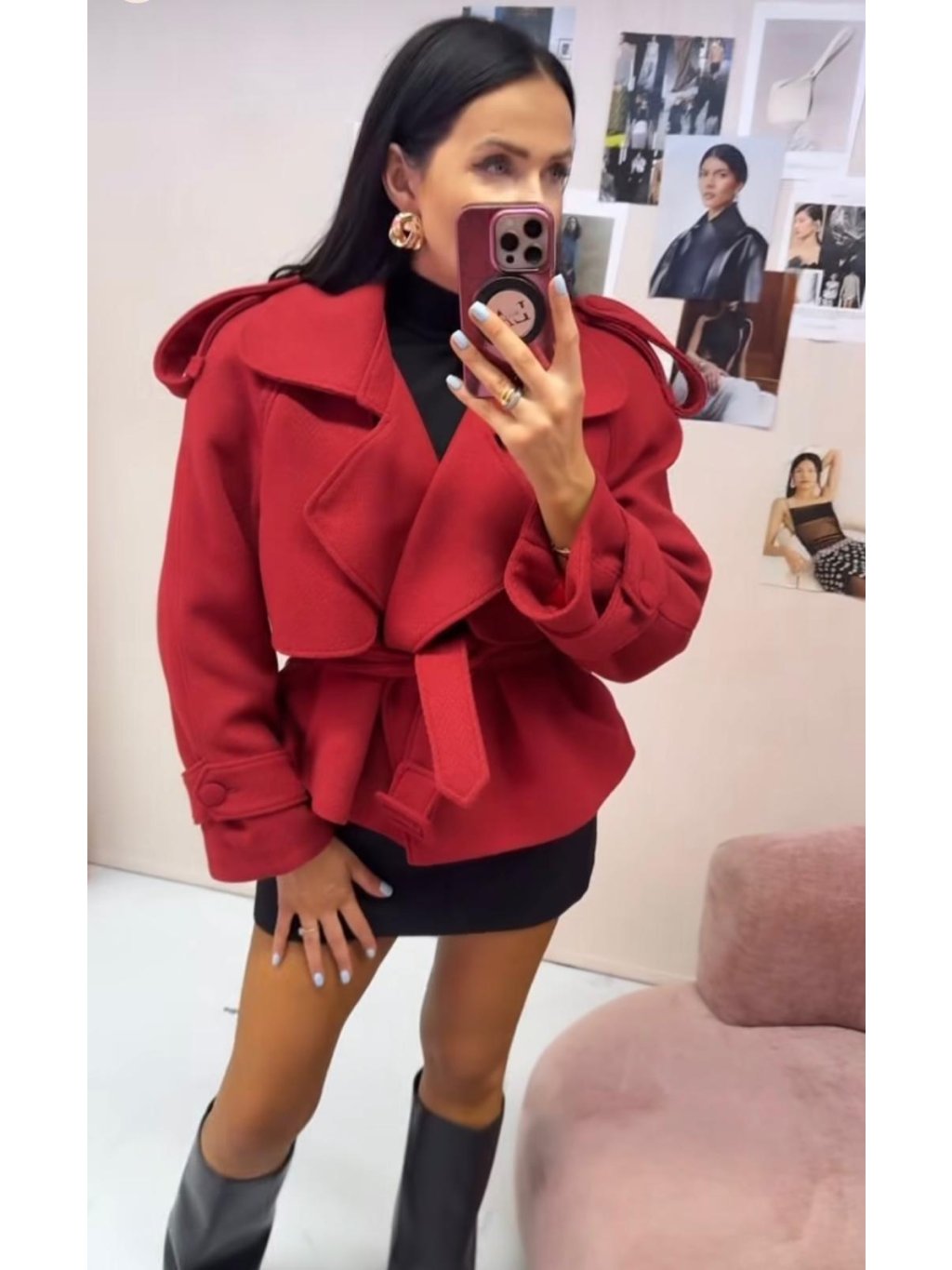 ❤️ Kabátik ROSANDI je kúskom, ktorý doslova priťahuje pohľady. Jeho sýto červená farba vyžaruje sebavedomie, energiu a ženskosť, zatiaľ čo prepracovaný strih pôsobí luxusne a zároveň prakticky. Kratšia dĺžka zvýrazňuje pás a opticky predlžuje nohy, čo vytvára krásnu, vyváženú siluetu. Vďaka viazaniu v páse si ho môžete prispôsobiť presne podľa svojej postavy a vždy vyzerať dokonale.