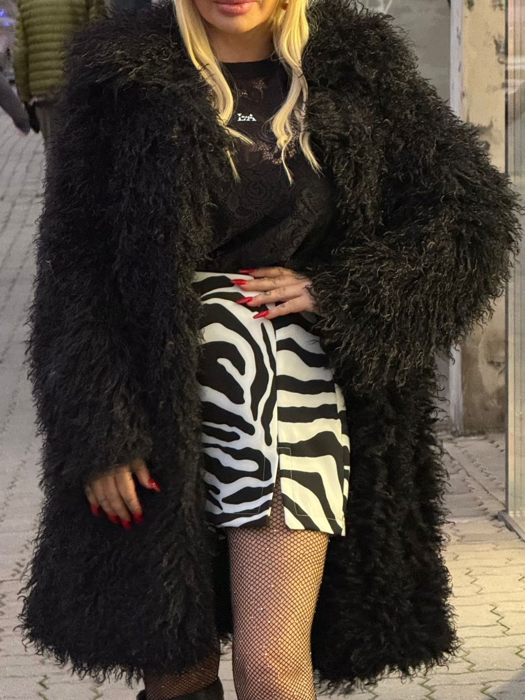 Vyrobený z kvalitnej umelej kožušiny, má bohatú, nadýchanú textúru a dlhé chĺpky, ktoré vytvárajú efekt luxusného objemu. Perfektný na jesenné aj zimné stylingy, či už k čižmám, koženkovým kúskom alebo elegantným šatám.