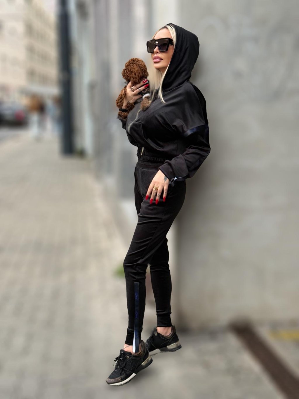 Štýlový, pohodlný a dokonale prepracovaný – teplákový komplet MAYA v čierno-modrom prevedení je must-have kúsok, ktorý spája športovú eleganciu s luxusnými detailmi. 🖤💙 Vyrobený z kvalitnej bavlny, ktorá je mäkká, priedušná a veľmi príjemná na pokožke – ideálny pre každý deň, keď chceš vyzerať skvelo a cítiť sa komfortne.