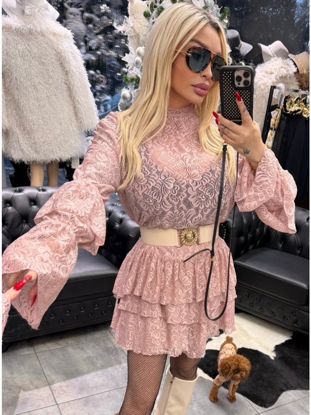 🌸 Luxusná pudrová čipka s romantickým efektom