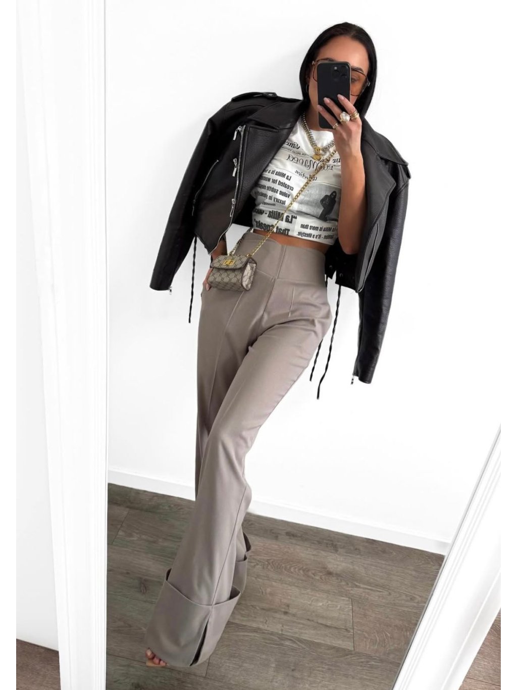 Elegancia v modernom prevedení. Nohavice NOIR cappucino v béžovom odtieni sú prémiovým kúskom, ktorý kombinuje nadčasový dizajn s aktuálnymi trendmi. Vysoký pás krásne formuje postavu, zatiaľ čo výrazné manžety dodávajú originálny charakter.