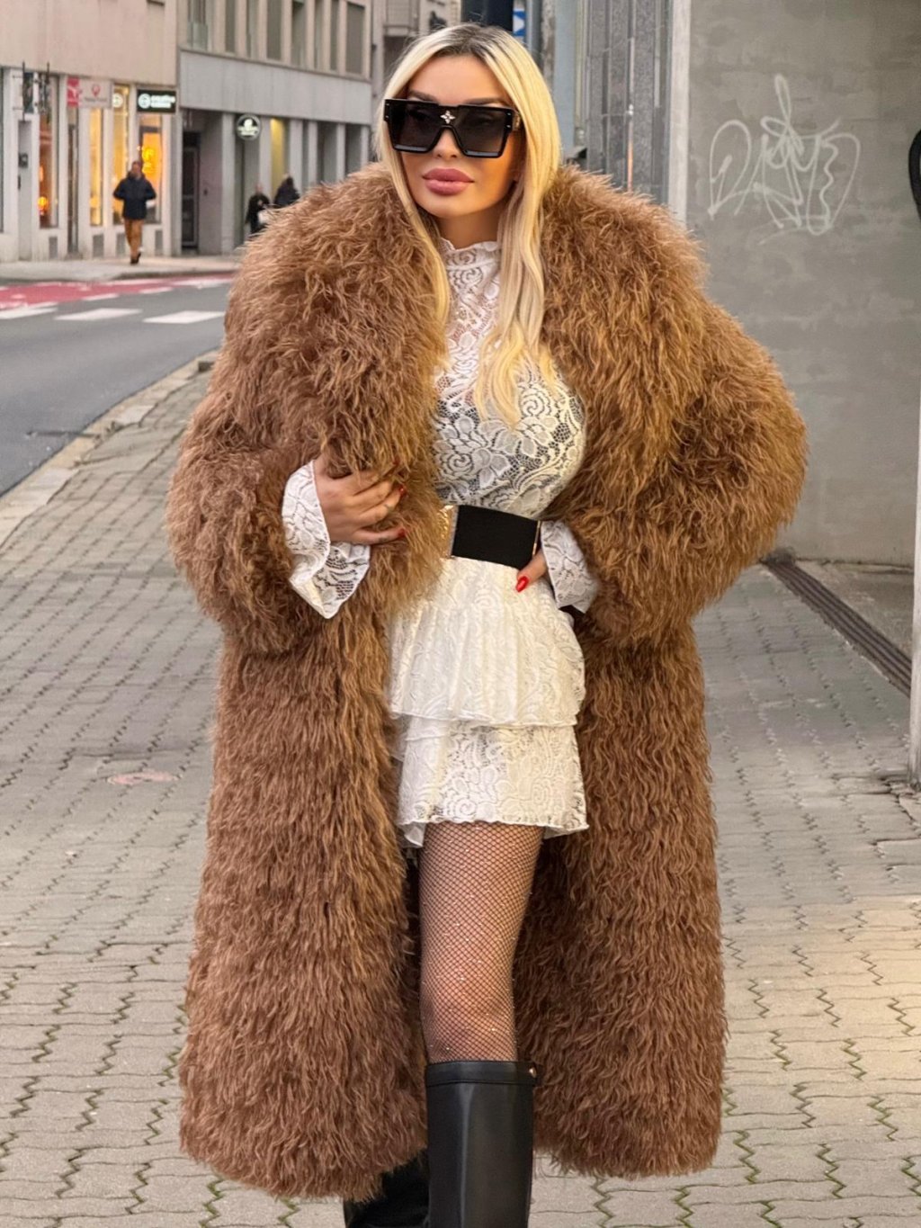 Dopraj si zimný luxus, ktorý neprehliadne nikto. Kožuch AURORA je stelesnením elegancie, mäkkosti a absolútneho komfortu. Hustá, prémiová umelá kožušina vytvára bohatý, nadýchaný efekt, ktorý pôsobí maximálne štýlovo a zároveň nádherne hrejivo.
