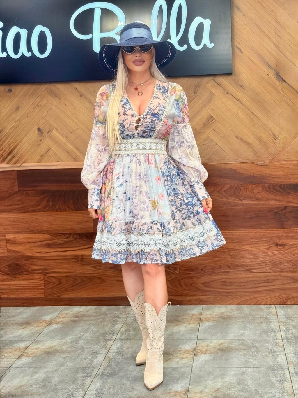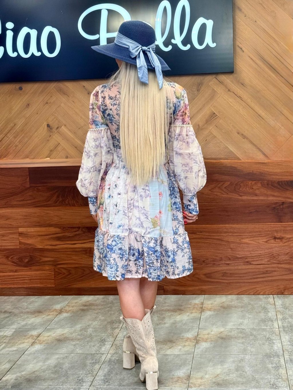 💐 Objav svoj kvetinový sen so šatami FLORENCE EXCLUSIVE 💐 Lichotivý strih, ktorý zvýrazní pás a pritiahne pohľady vďaka romantickému patchworkovému vzoru a čipkovému detailu. Pohodlie aj štýl v jednom!