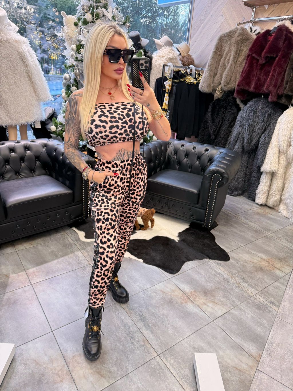 Pre ženy, ktoré milujú pozornosť a sebavedomie! Komplet LA FELINA ťa zmení na kráľovnú mestských džunglí – zvierací vzor v kombinácii s kontrastnou saténovou stuhou „La Perla“ dodáva outfitu exkluzívny nádych. 💋