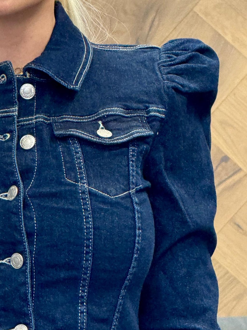 Rifľová klasika s dokonalým ženským twistom! Bunda KALIA si ťa získa elegantným strihom, jemne nariasenými ramenami a perfektným zvýraznením siluety. Tmavá rifľovina pôsobí luxusne a ľahko sa kombinuje – či už s nohavicami, šatami alebo sukňou. A čo je najlepšie? Tvorí dokonalý komplet s rifľami KALIA – spolu vytvárajú outfit, ktorý pôsobí prepracovane, štýlovo a nadčasovo.