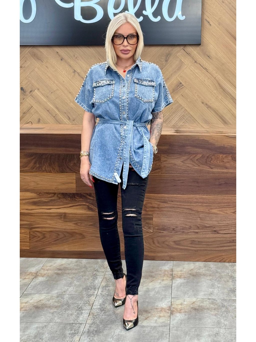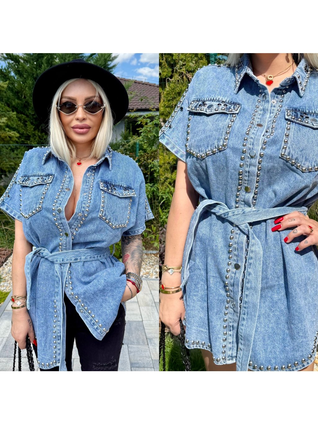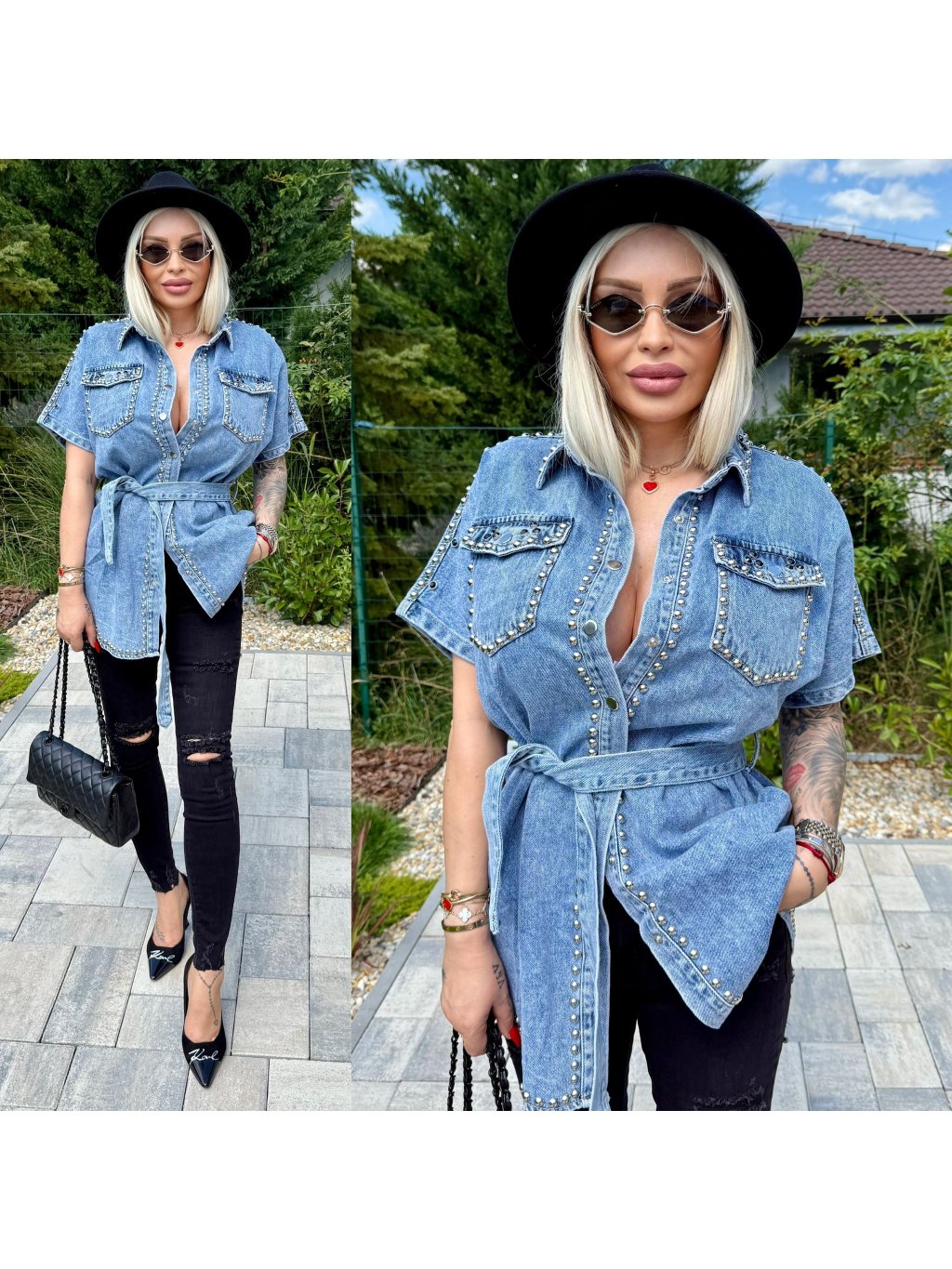 ELIZA je rifľový kúsok, ktorý spája uvoľnený raglánový strih s výraznými kovovými detailmi. Nosiť ju môžeš ako predĺženú košeľu k legínam či ako štýlové šaty. Ozdobné nity a výrazné gombíky dodávajú rebelský nádych, no vďaka kvalitnému spracovaniu pôsobí stále žensky a sofistikovane.