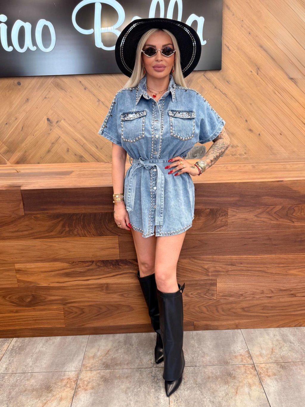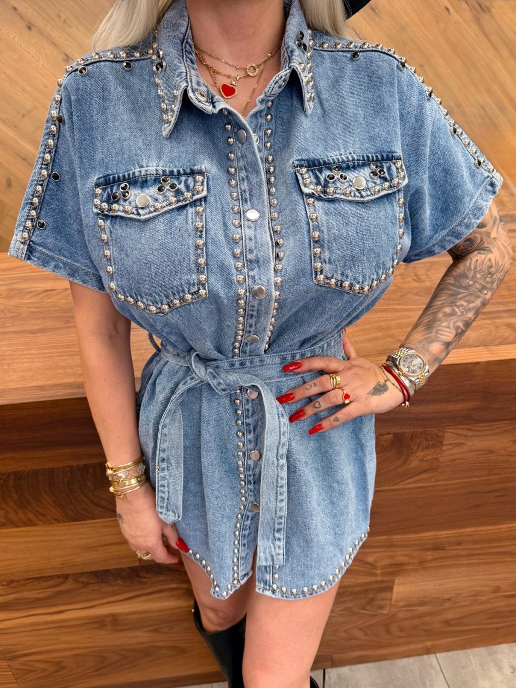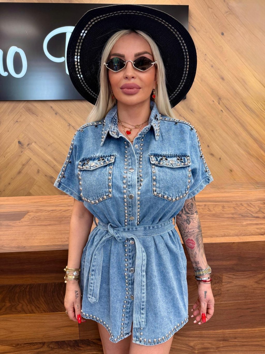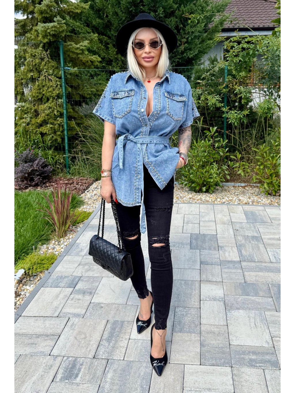 ELIZA je rifľový kúsok, ktorý spája uvoľnený raglánový strih s výraznými kovovými detailmi. Nosiť ju môžeš ako predĺženú košeľu k legínam či ako štýlové šaty. Ozdobné nity a výrazné gombíky dodávajú rebelský nádych, no vďaka kvalitnému spracovaniu pôsobí stále žensky a sofistikovane.