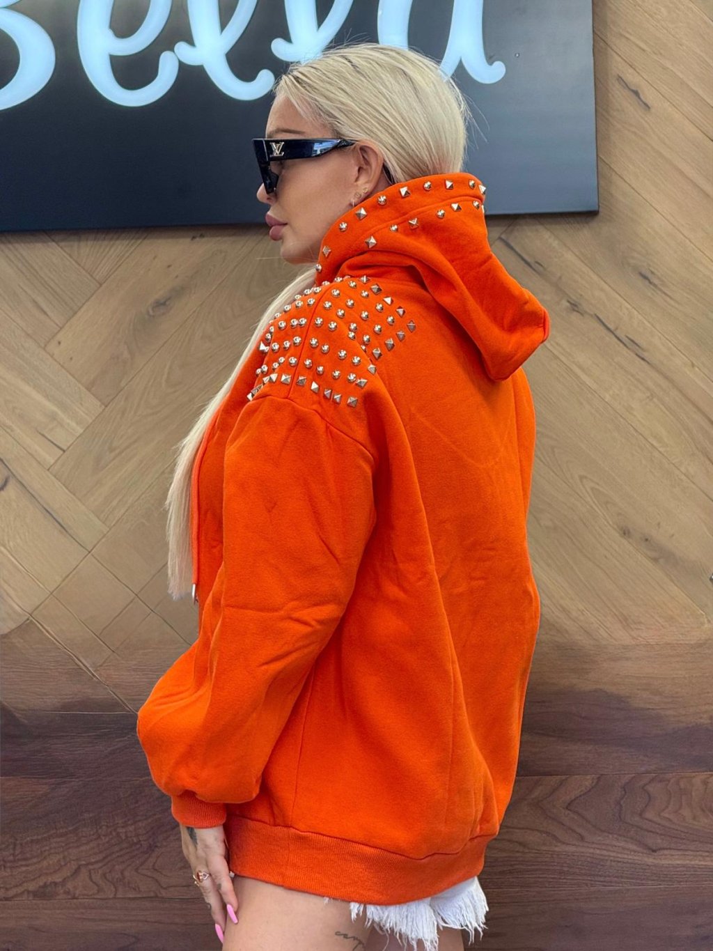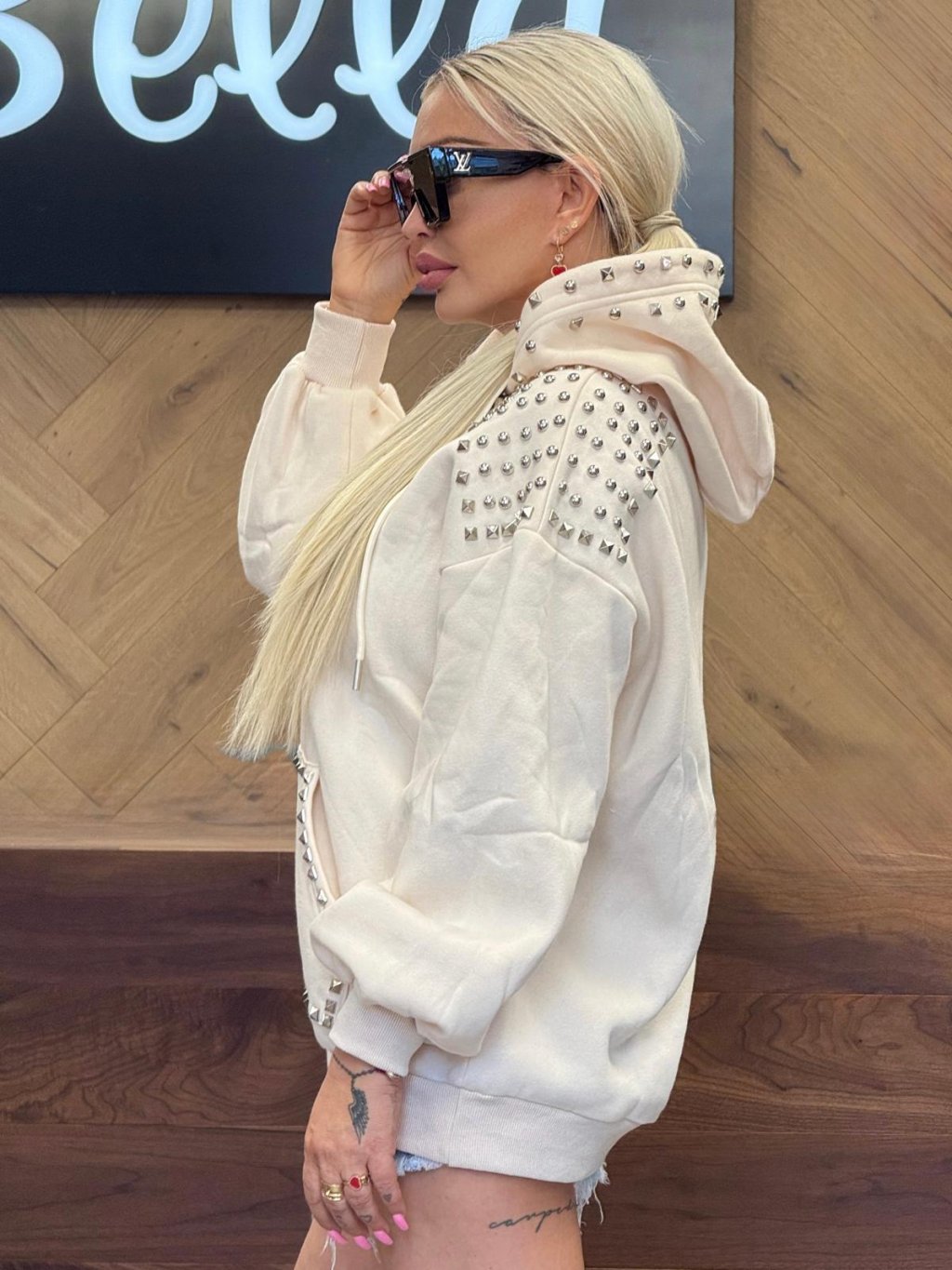 Keď chceš byť v teple, ale stále štýlová! Mikina AMISA je neprehliadnuteľný kúsok, ktorý prepája pohodlie s rebelským lookom. Ozdobená výraznými kovovými nitmi na ramenách a kapucni, dodá každému outfitu štipku extravagancie. Oversize strih je trendy, ale zároveň maximálne pohodlný – ako stvorený na mestské prechádzky, kávu s kamoškami alebo len tak, na bežný deň.