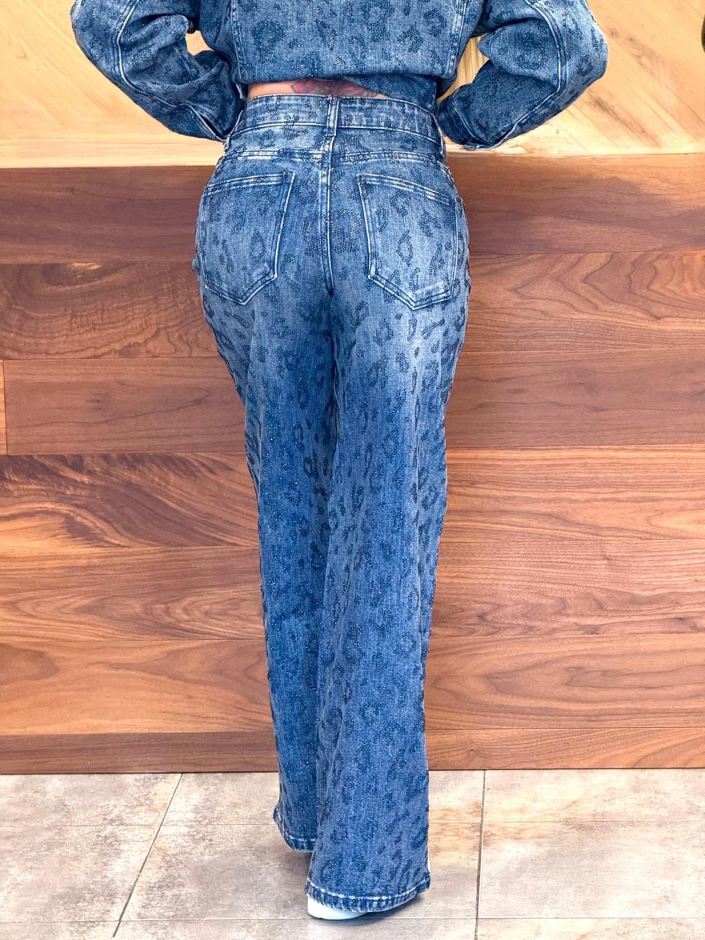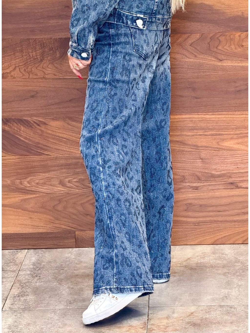 Divoký štýl, ktorý žiari! Rifle EXCLUSIVE LEO sú výnimočný kúsok pre každú ženu, ktorá miluje extravagantné detaily a lesk. Tmavá rifľovina je po celej ploche zdobená trblietavým leopardím vzorom, vďaka čomu pôsobia luxusne a zároveň dravo. V kombinácii s bundou EXCLUSIVE LEO vytvárajú dokonalý komplet, ktorý zaručene pritiahne všetky pohľady.