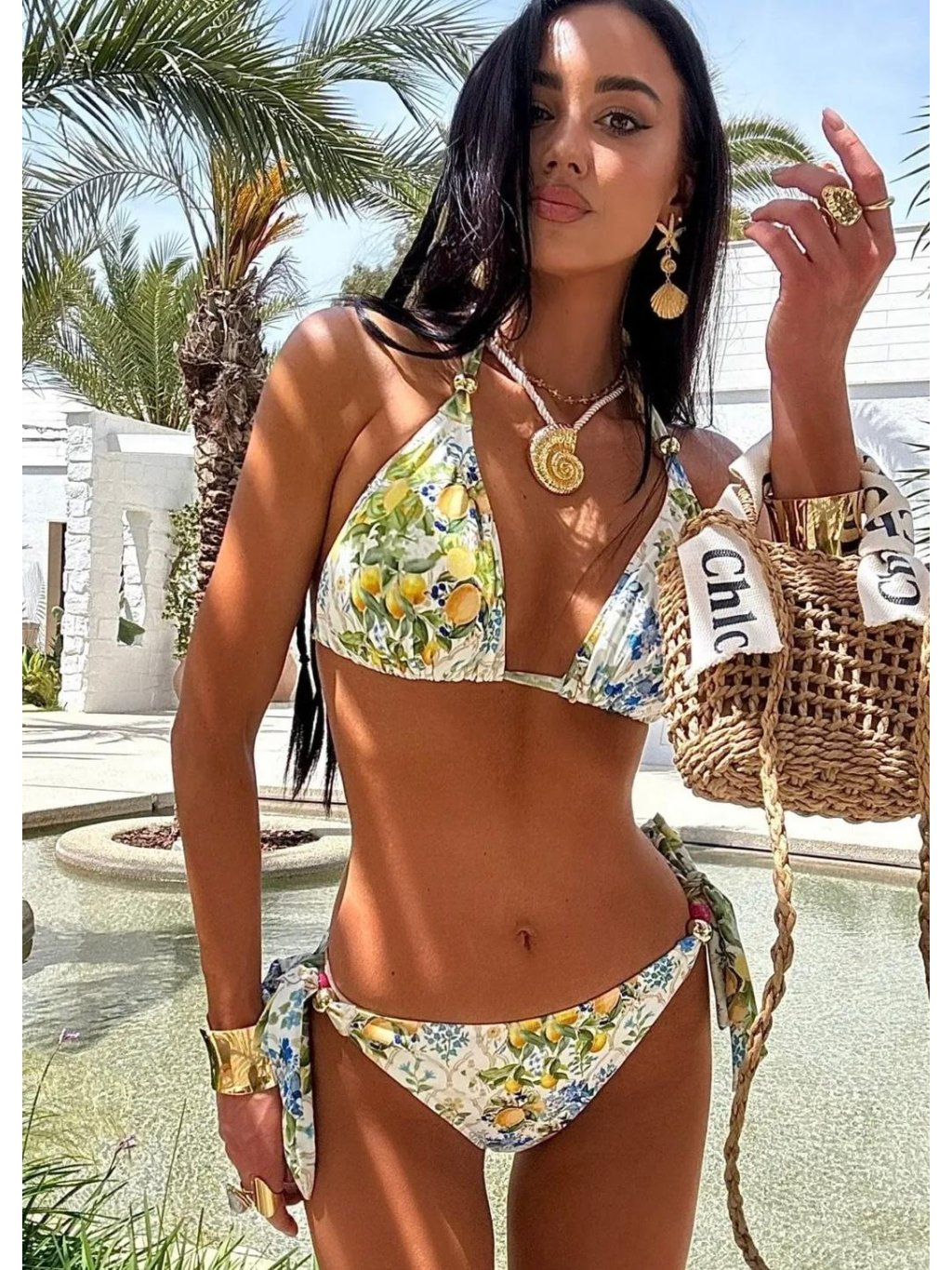Romantické, ženské a svieže — dvojdielne plavky s nádherným letným vzorom citrónov a kvetiniek. 🌸🍋