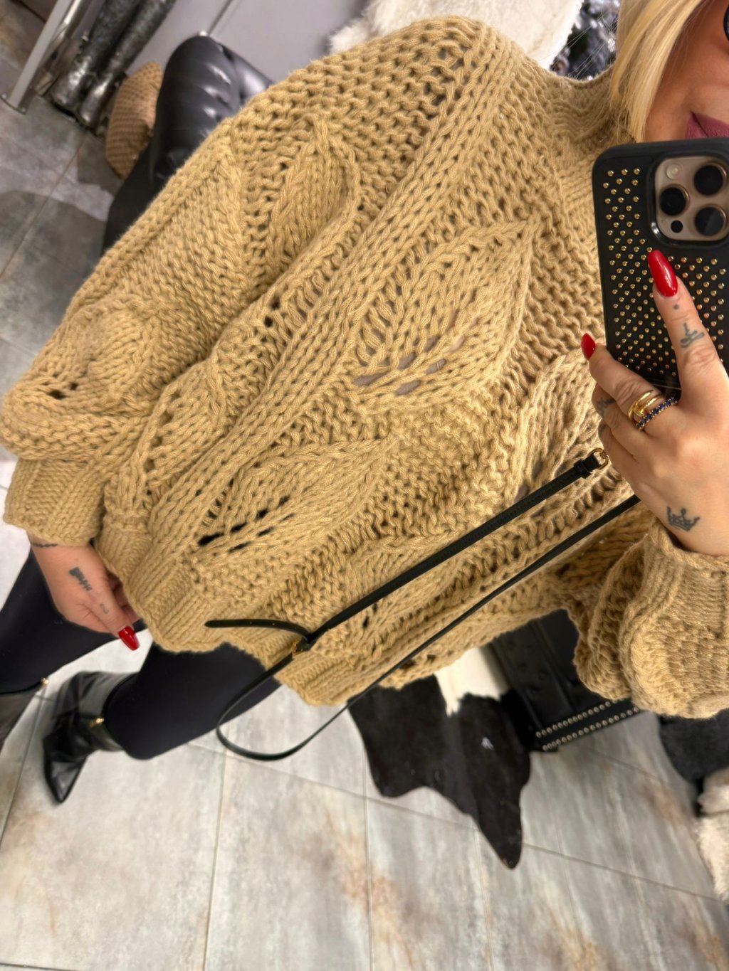 Pohodlný, hrejivý a maximálne štýlový! Pulóver ANABEL je krásne pletený kúsok s výrazným rolákovým golierom, ktorý udrží teplo a dodá outfitu elegantný zimný look. Hrubá, mäkučká pletenina pôsobí luxusne a voľný UNI strih sadne nádherne každej postave – od XS až po XL.