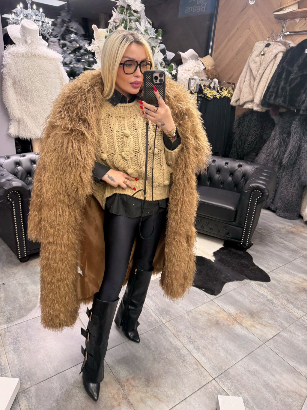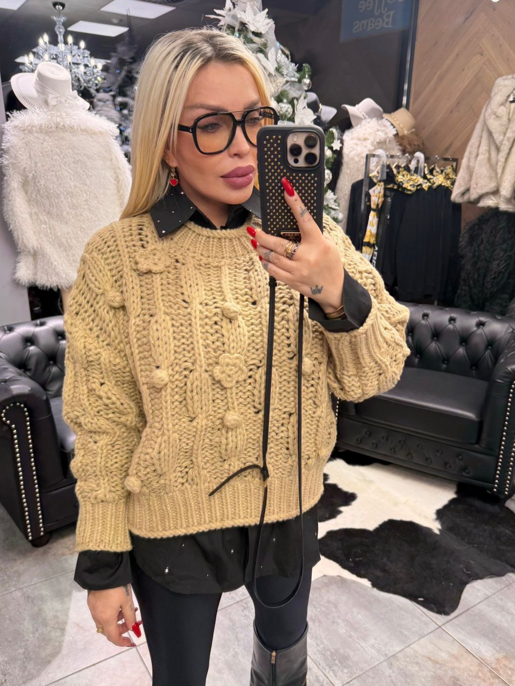 Dopraj si hrejivý zimný komfort v štýlovej podobe! Pulóver MAJA je výrazný, mäkučký a prepracovaný pletený kúsok s plastickým vzorom, ktorý okamžite upúta. Hrubá pletenina pôsobí luxusne, je neuveriteľne príjemná a krásne drží tvar. Vďaka pohodlnému UNI strihu sadne od XS až po XL, takže je ideálny pre každú postavu.