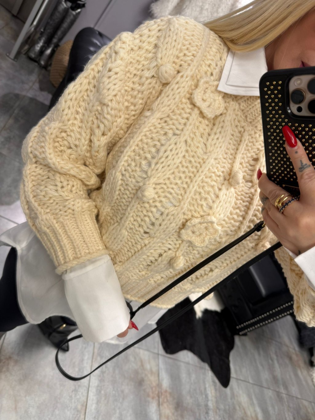 🌿 Plastický pletený vzor – pôsobí luxusne a žensky