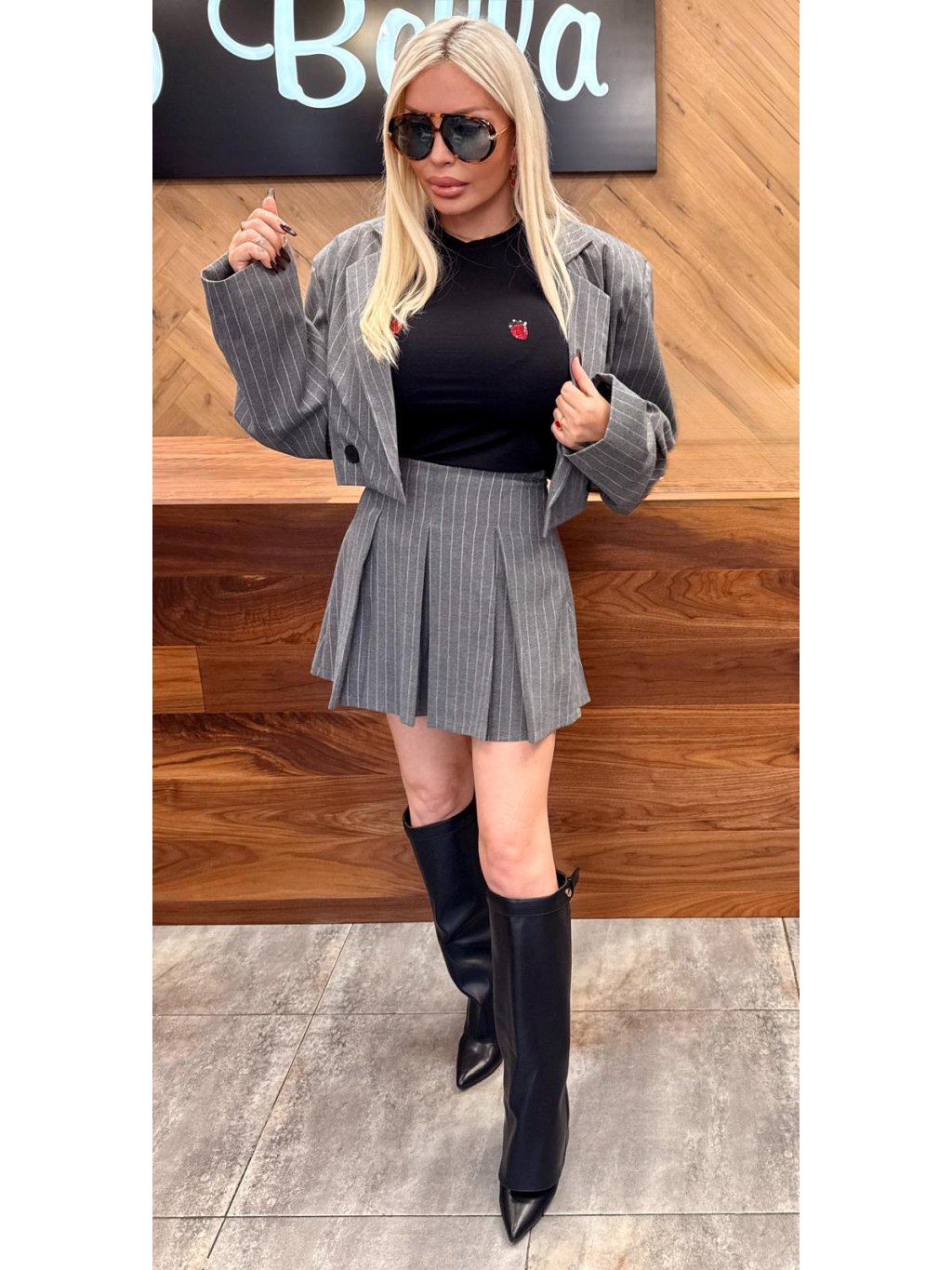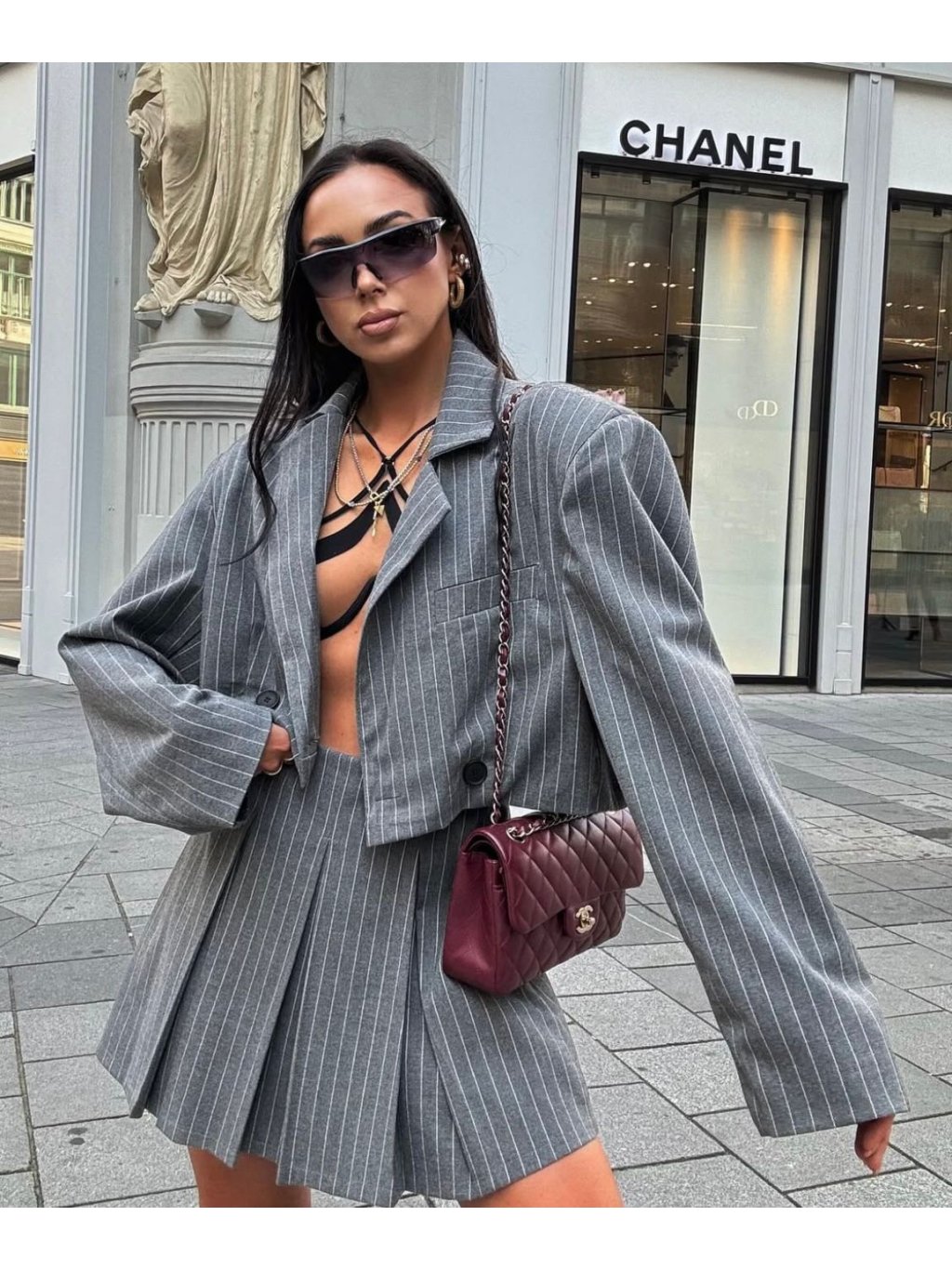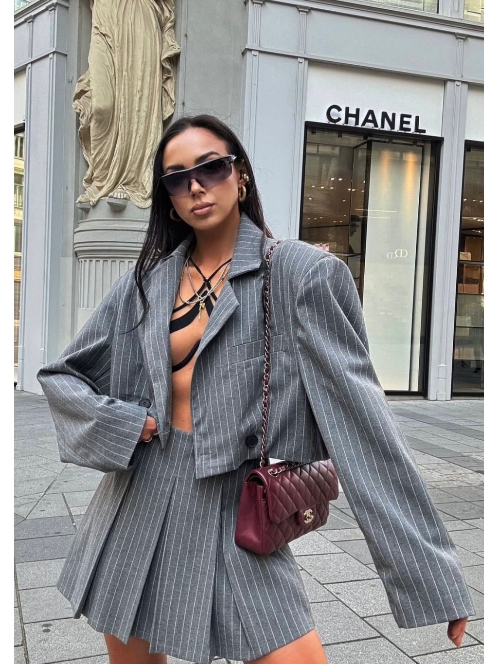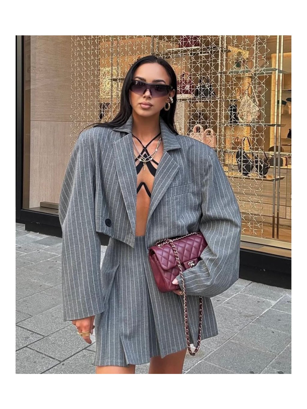 Trendy kratšie sako so vzorom pásikov, ktoré si okamžite získa tvoje srdce 💎 Elegantné a zároveň rebelské – perfektne oživí každý outfit a dodá mu sofistikovaný vzhľad. Ideálny kúsok na vrstvenie, ktorý využiješ počas celého roka.
