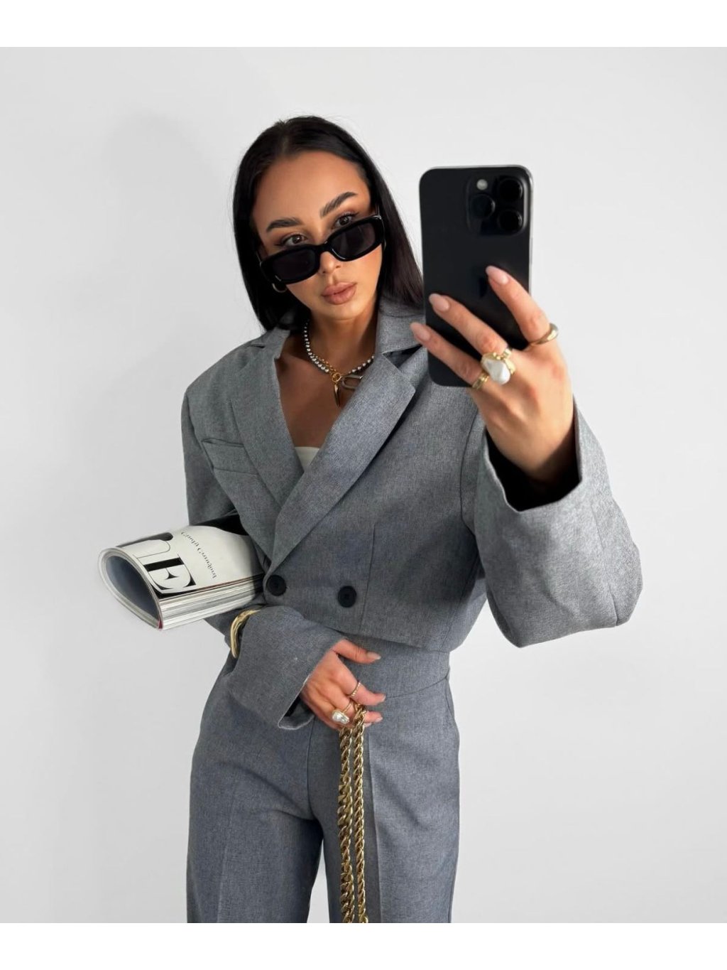 Sako GREYLYN tvorí dokonalý set s nohavicami NOIR sivá – ale môžeš ho nosiť aj samostatne k sukniam či rifliam.