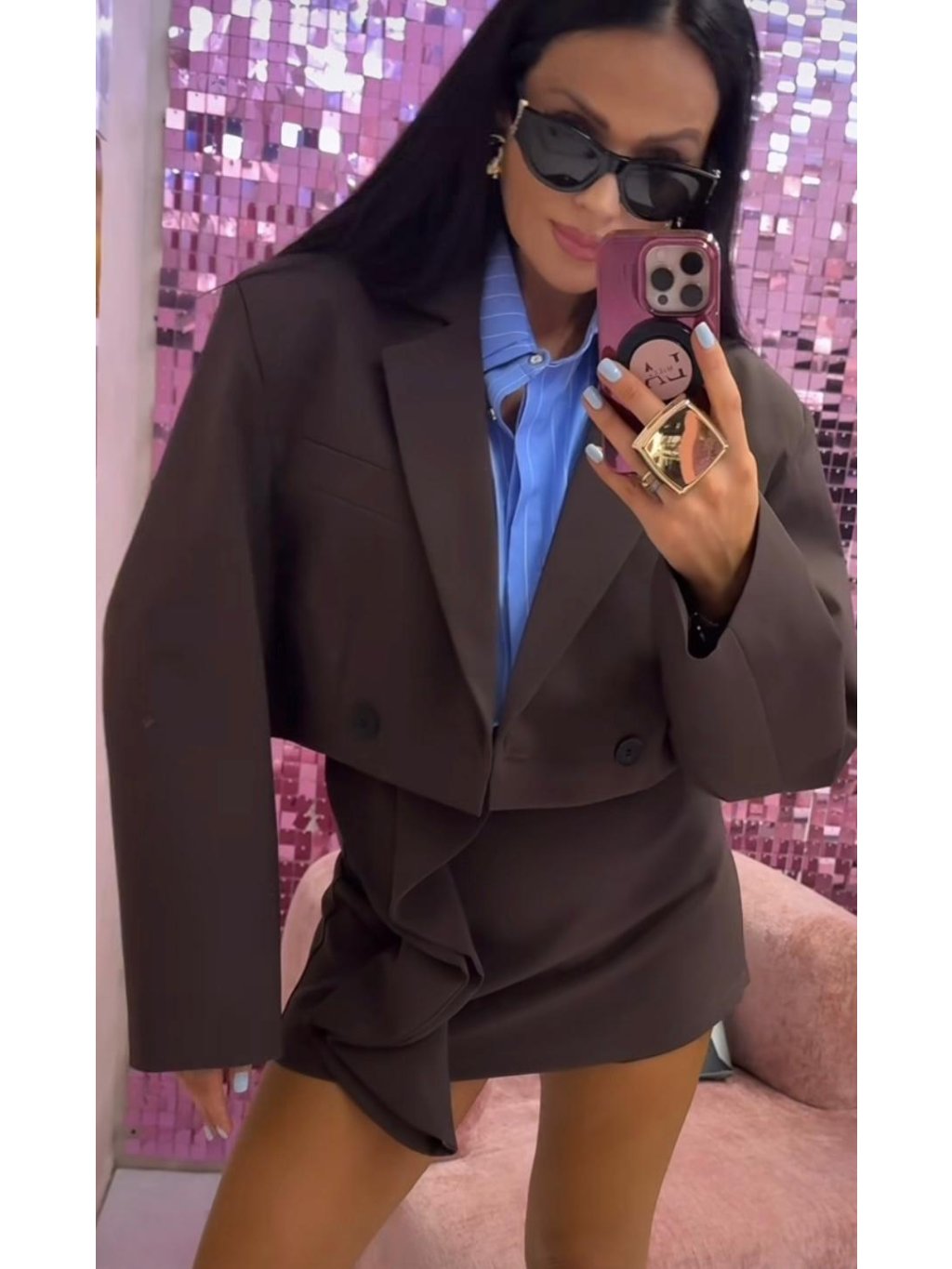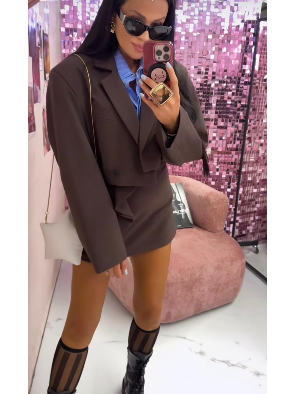 🤎 Krátke sako Vittoria v čokoládovom odtieni je dokonalý základ šatníka pre všetky, ktoré milujú štýl a eleganciu. Moderný skrátený strih krásne zvýrazní pás a ľahko sa kombinuje s nohavicami, sukňami či šatami. Dvojradové zapínanie s gombíkmi dodáva luxusný vzhľad a pôsobí nadčasovo.