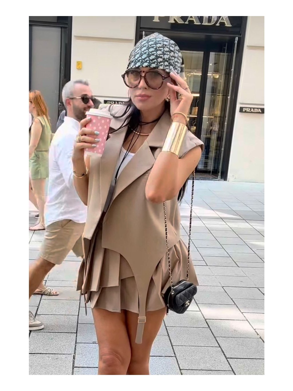 ✨ Vesta Aurea je moderný a univerzálny kúsok, ktorý dodá šmrnc každému outfitu. Elegantný strih so zapínaním a výrazným golierom pôsobí štýlovo, zatiaľ čo béžová farba je ľahko kombinovateľná s každým šatníkom. Asymetrické prevedenie s viazaním dodáva veste originálny nádych, vďaka ktorému vynikneš.