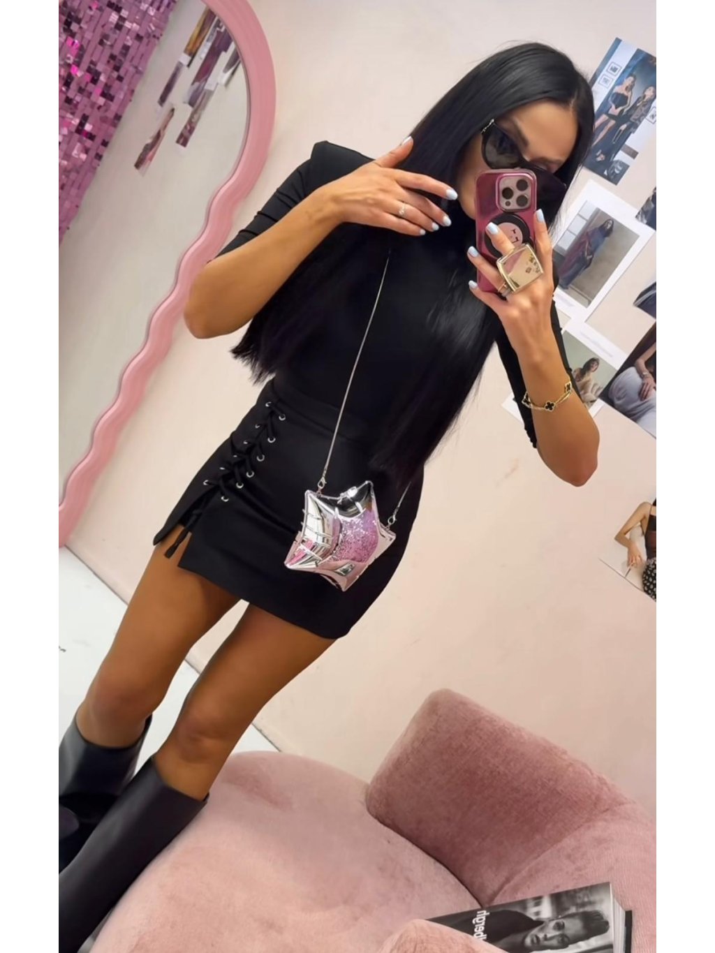 Kúsok, ktorý spája eleganciu so sexi detailom ✨ Sukňa LACE-UP v čiernej farbe pôsobí na prvý pohľad ako klasická mini sukňa, no šnurovanie vpredu jej dodáva výrazný a odvážny nádych. Vďaka priliehavému strihu krásne zvýrazní postavu a stane sa dominantou každého outfitu – či už ju skombinuješ s jednoduchým topom alebo oversized sakom.