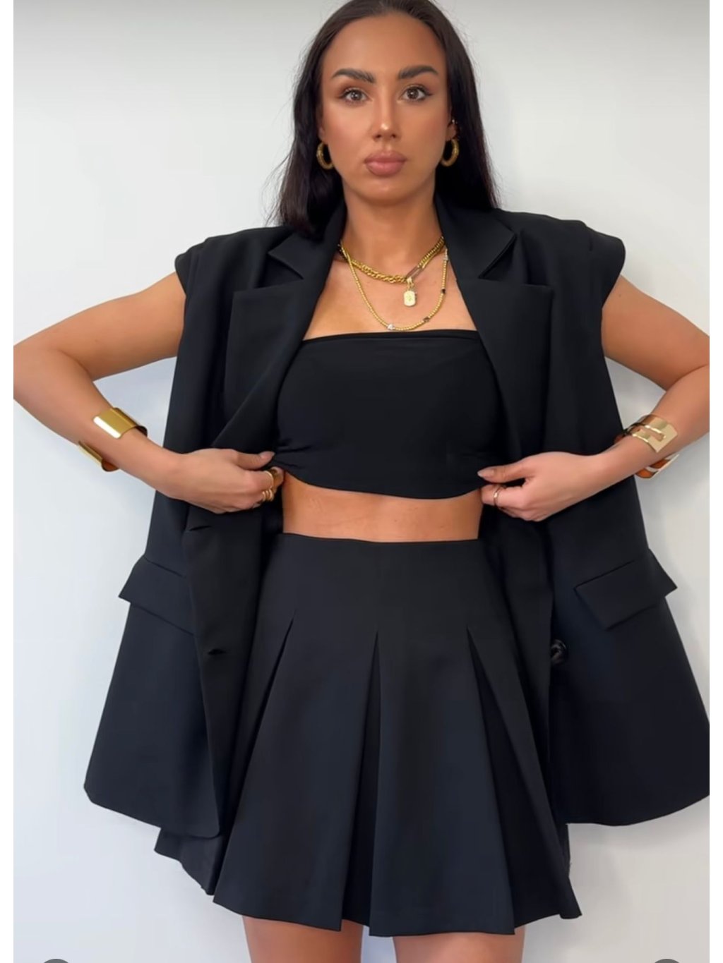 Štýlové, praktické a vždy trendy! Sukňošortky NERA v čiernej farbe kombinujú eleganciu mini sukne s pohodlím šortiek. Vďaka plisovanému strihu pôsobia mladistvo a moderne – ideálny kúsok na každý deň aj na večerný look.