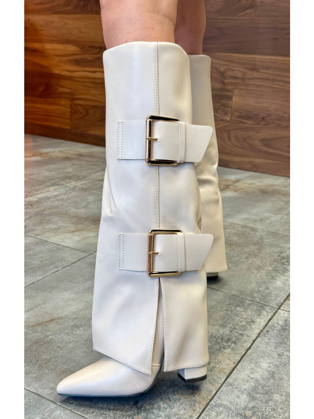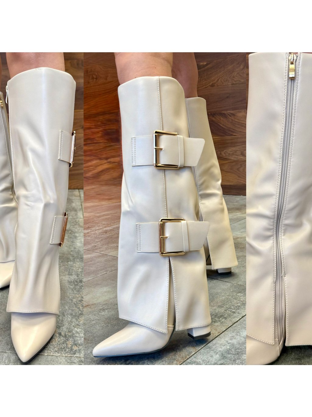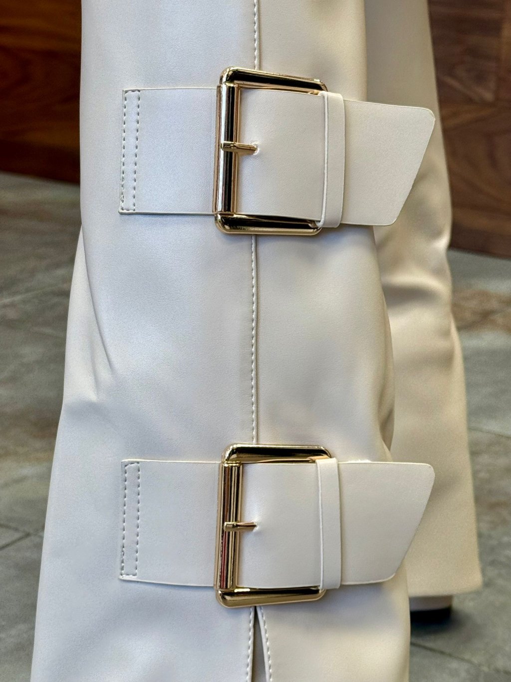 Túžiš po extravagantnom kúsku, ktorý rozžiari tvoj outfit? Čižmy CASSIE v béžovej farbe sú elegantné, výrazné a originálne vďaka širokým remienkom so zlatými prackami. Ich moderný dizajn a pohodlný podpätok ti dodajú sebavedomie a štýl, či už ich obuješ k šatám, sukni alebo úzkym nohaviciam.