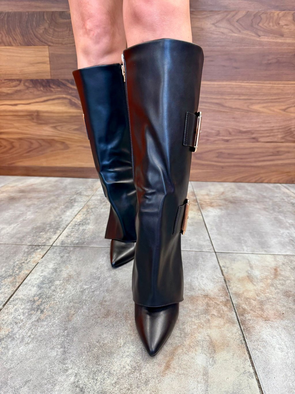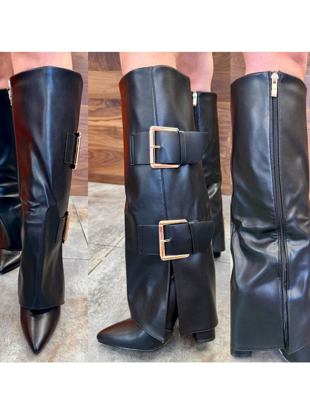 👢 Detail: výrazné zlaté pracky, bočný zips, špicatý tvar