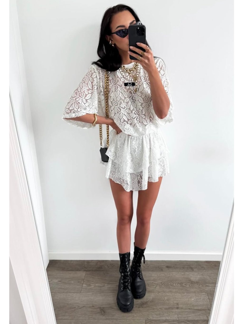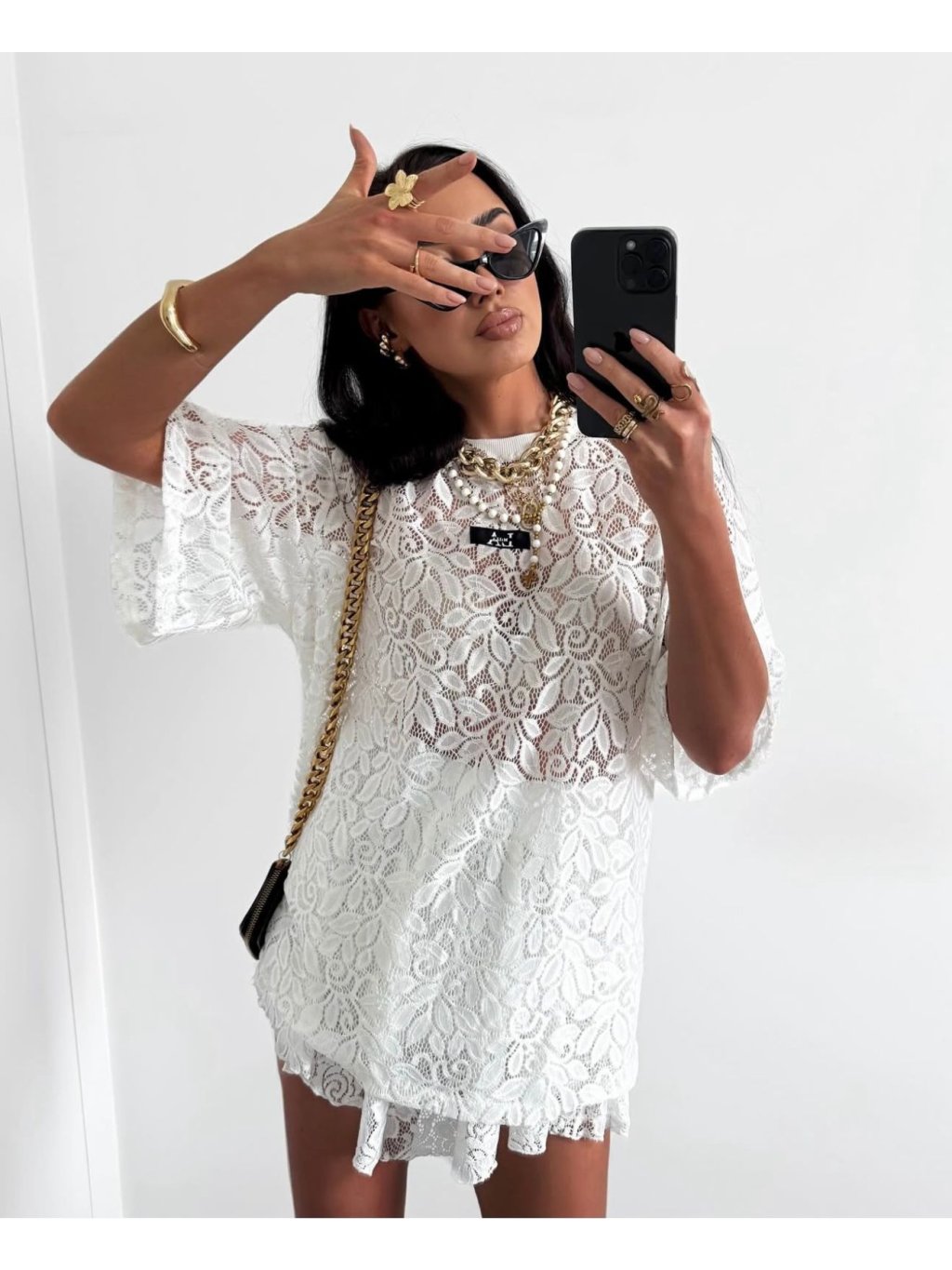 Žiarivé, ženské a neprehliadnuteľné – presne také je krajkové tričko LUCENTE 🤍 Jemná čipka s kvetinovým motívom ti dodá nádych romantiky a elegancie, no zároveň je dostatočne moderná, aby sa dala ľahko kombinovať s tvojimi obľúbenými kúskami. Oversized strih prináša maximálne pohodlie a voľnosť pri nosení, takže sa budeš cítiť krásne a sebavedomo počas celého dňa.