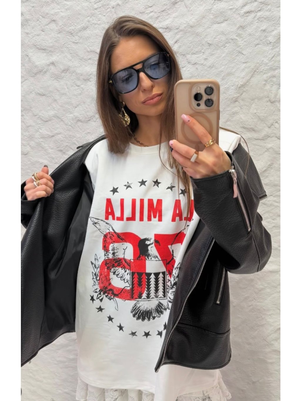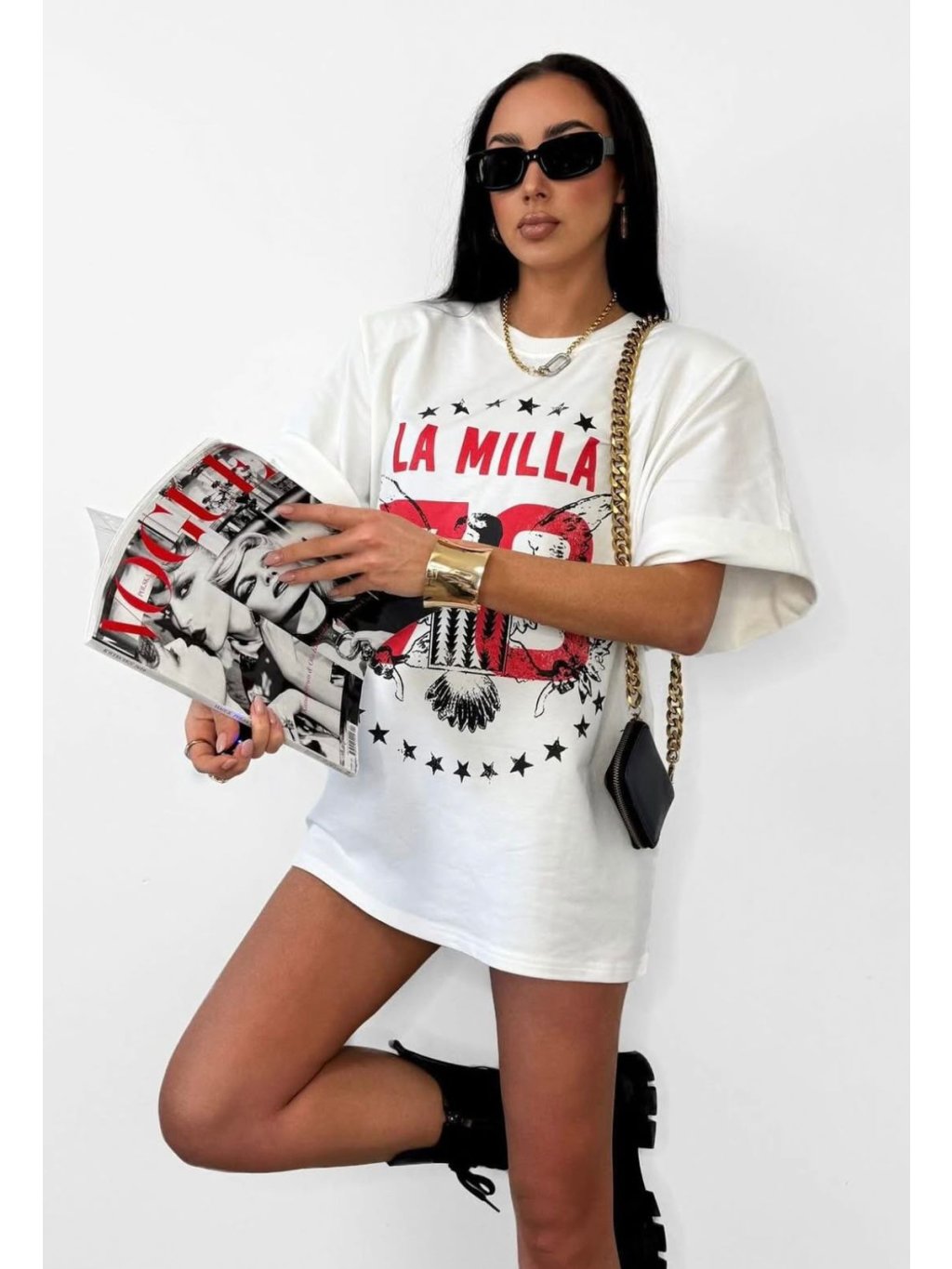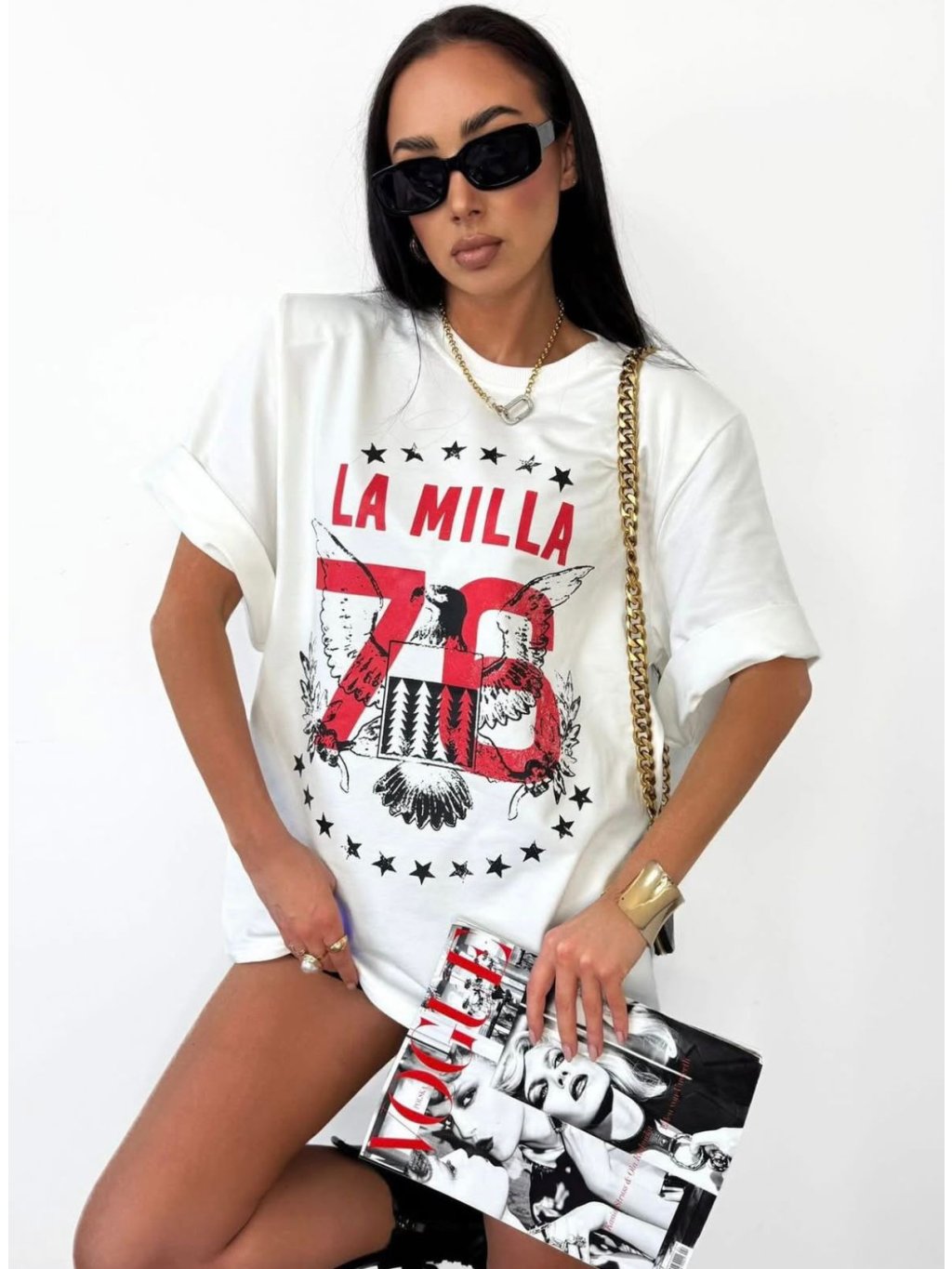 🤍 Oversize tričko Rebelli je ten pravý streetstyle kúsok, ktorý ťa okamžite vtiahne do mestského vibe. Dominantná grafika s číslom 76, orlom a nápisom La Milla dodáva odvážny charakter a cool energiu. Vďaka voľnému strihu sadne každému a perfektne sa kombinuje s rifľami, legínami či koženými kúskami.