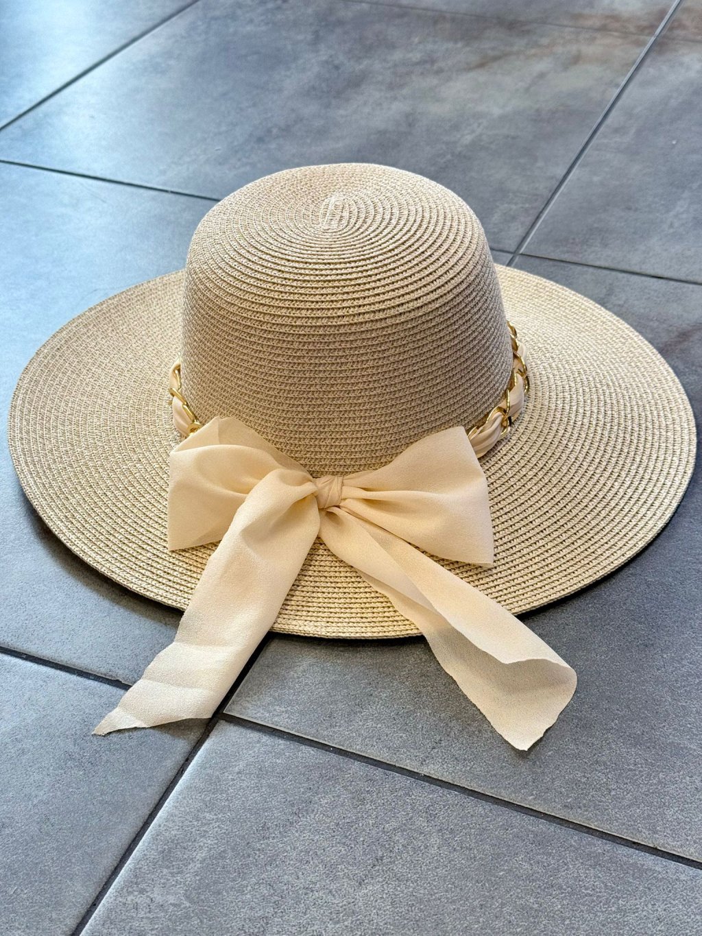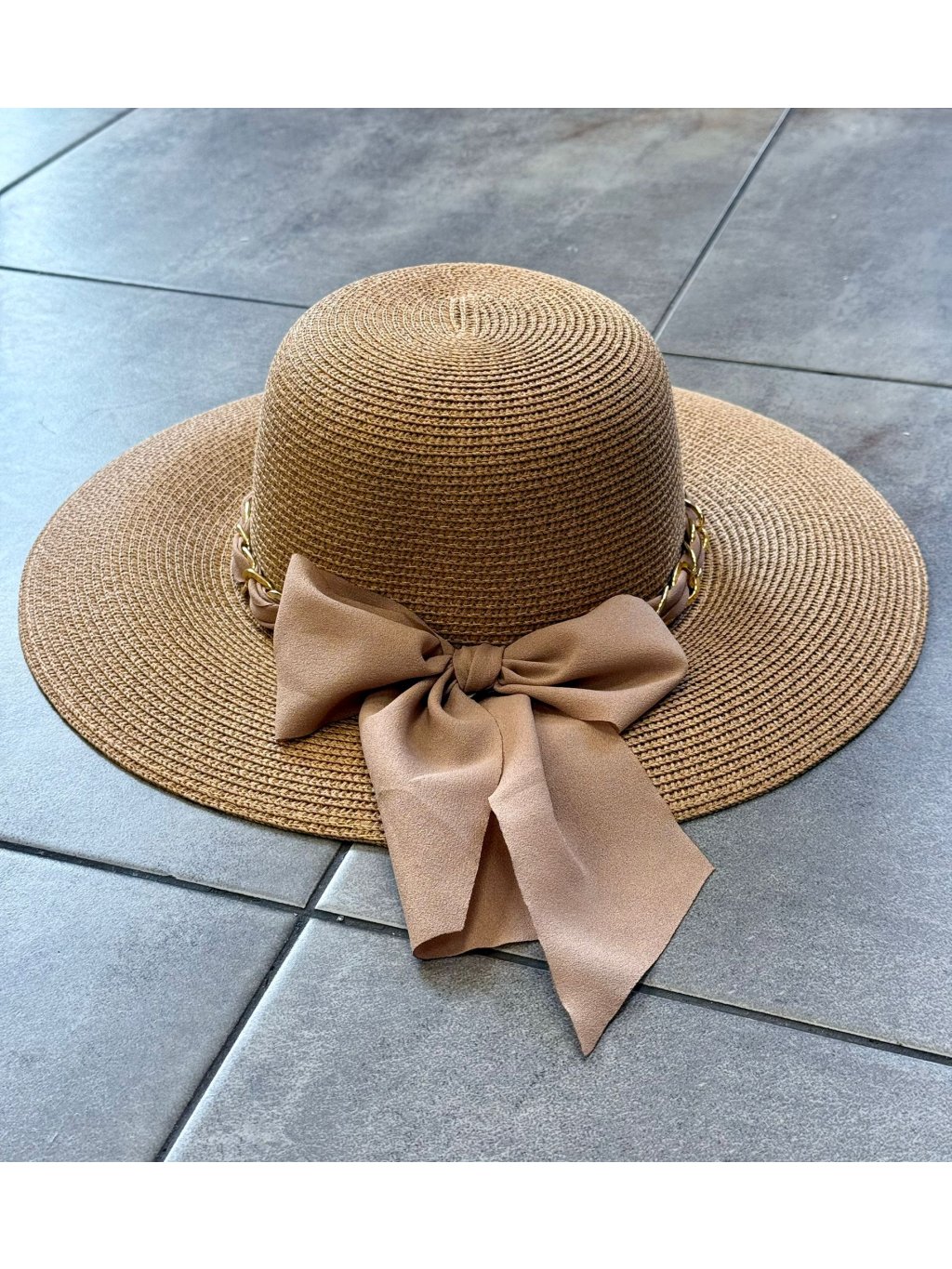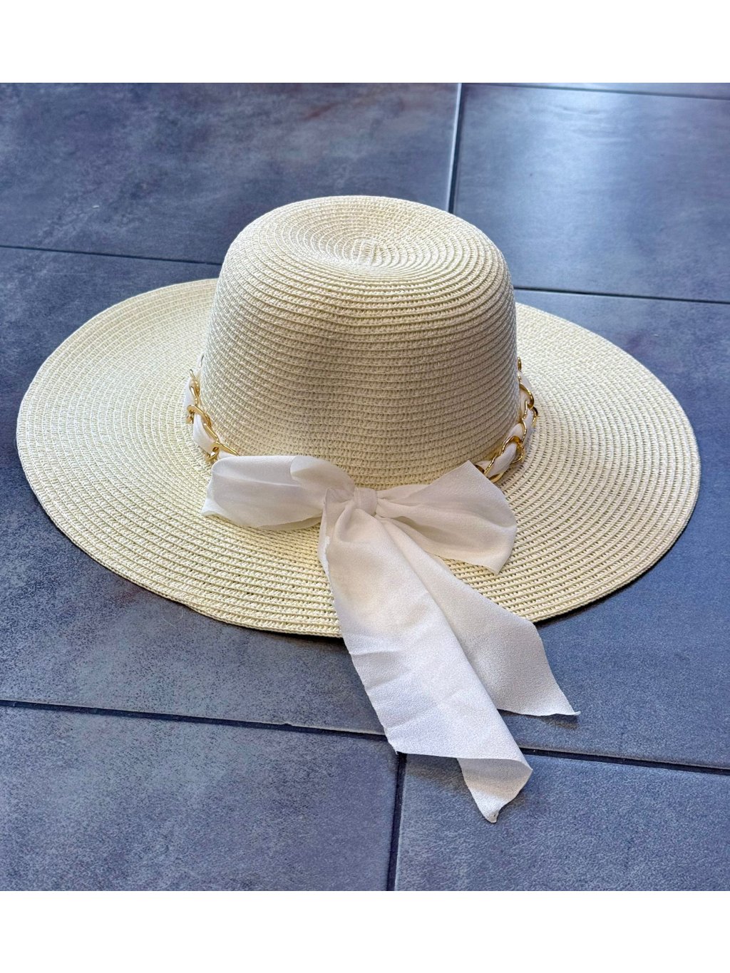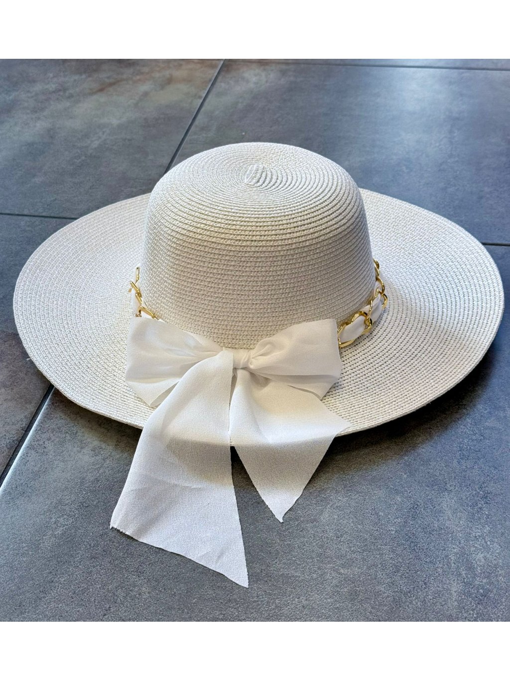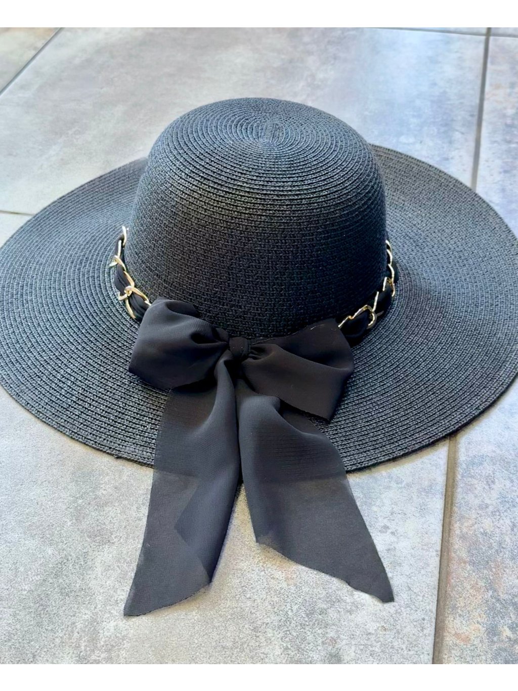 🎀 Letná elegancia so štipkou luxusu 🎀 Klobúk BOW s výraznou mašľou a zlatou retiazkou je dokonalým doplnkom každej ženy, ktorá chce zažiariť. Ochráni ťa pred slnkom a dodá outfitu šmrnc, či už si na pláži, na terase pri drinku alebo na prechádzke mestom.